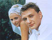 Стоит при этом оговориться: никакой ошибки или недоразумения в присуждении Лунгину каннской награды нет. Кастинг действительно - что надо. Одна из необходимых деталей всей конструкции. История про любовь - ну и основное внимание уделяется двум главным фигурантам. Тот, который мужчина - шахтер Мишка, сыгранный Маратом Башаровым, - с одной стороны, белобрыс и безлик, с другой - симпатичен и положителен. Плюс к тому - ему приданы черты эдакого русского народного дуралея. Сам Лунгин предпочитает называть это "идиотом в достоевском смысле слова" (так помечено в каннском буклете). Ясный пень, где Россия, там и Достоевский . А также баня, водка, гармонь и лосось . Всего этого в "Свадьбе" хоть отбавляй. Но вернемся к главным героям. Та, что женщина - Мария Миронова, она же московская красотка Таня, вернувшаяся в родные Липки, чтобы выйти замуж за школьного бой-френда и отказаться от грешной столичной жизни. Подразумевается, что героиня загадочна и немыслимо хороша. В реальности - вполне мила и как раз соответствует стереотипу "первой девки на деревне". Ну и - не будем забывать об ФМД - немножко неврастении, спрятанный ребенок, хочется и погулять, и пострадать: чистая Настасья Филипповна липкинского разлива. Заметим, что оба - актеры молодые и многообещающие, но уже знакомые нашей публике: первый - по "Сибирскому цирюльнику" и "Ворошиловскому стрелку" (хорошие такие, народные картины про неистощимую щедрость типа русской типа души), вторая - как дитя любимца всея СССР и РФ А.Миронова.