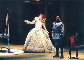 Новая постановка "Роберто Деверо" держится целиком на великой примадонне. Хотя вокруг нее молодые певцы высокого класса: тенора Рамона Варгаса многие считают новым Доминго (не только потому, что он тоже рос в Мехико), а испанский баритон Карлос Альварес - уже настоящая звезда. Постановка румынского режиссера Сильвиу Пуркарету сводится к тому, чтобы не мешать певцам петь: единственная находка - это музей оживающих восковых фигур. Сценография Хельмута Штюрмера - культурологическая смесь современных английских джентльменов с зонтиками (хор), исторических костюмов елизаветинской эпохи (солисты) и вида неаполитанского театра San Carlo , где прошла мировая премьера оперы Доницетти.