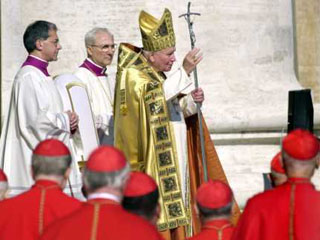 В ходе торжественной церемонии на площади Святого Петра в Риме Папа Римский Иоанн Павел II возвел в кардинальский сан 44 церковных иерарха из 27 стран, сообщает "Эхо Москвы" со ссылкой на "Интерфакс".