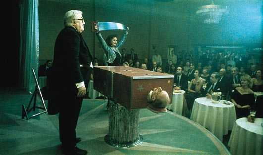 Особенного пафоса в этих словах и других символических эпизодах фильма нет. Просто для Андерсона ключевым остается принцип унижения, на котором и стоит, по его мнению, человеческая цивилизация. Жалко всех - и униженных, и унижающих, тем более, что вместе они образуют замкнутую систему, порочный круг. Почти все герои "Песен" - старые, грузные, неуклюжие; у большинства на лицах наложен белый грим, как у клоунов в цирке или актеров японского театра. Это и очередное указание на театральность, условность всего происходящего, и принципиальная установка на непрофессионализм; перед нами актеры провинциального цирка, разучившиеся делать даже самые тривиальные трюки. Таким в фильме предстает все человечество.