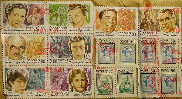 Сегодня в качестве впечатления - картинка. Это марки, приклеенные на бандероль, полученную Юрием Сюгановым