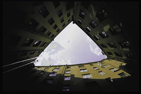 Б.Б.: Как-то я, чикагский врач и бывший питерец Евгений Закусило и берлинский дизайнер Дмитрий Лавров сидели за столом и разговаривали о том, что хорошо бы зарабатывать на жизнь красивыми проектами. "Что бы придумать?" - размышляли мы, попивая хорошее вино в изумительной студии Лаврова в Дюссельдорфе. Разговор вдруг перекинулся на Питер, у каждого были с ним связаны какие-то личные воспоминания. Договорились до того, что наряду с "Петербургом" Андрея Белого должен существовать и другой Петербург - остается только сделать его. Ясно, что это должны быть фотографии, но чего и какие? Пришла идея дворов-колодцев. Вскоре Закусило по своим делам полетел в Питер и, заходя во дворы и ложась на спину на асфальт, снял их на слайды - вид снизу вверх. Лавров их обработал на компьютере, буквально вылизал, получились невероятно красивые картинки. Не просто картинки - объекты. Потом мы созвонились со своими любимыми писателями, которых попросили написать тексты. Первоначальный вариант был представлен на выставке в ЦДХ , это была презентация проекта.