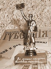 Штаб псковского карнавала присудил приз «За лучшее освещение псковского летнего карнавала» среди региональных средств массовой информации в 2001 году «Псковской губернии».