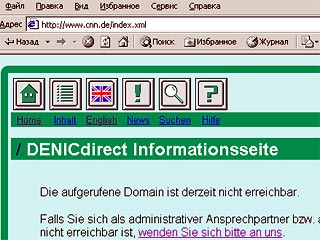 Об этом сообщил в понедельник Клаус Херциг, пресс-секретарь организации Denic, которая занимается регистрацией интернет-страниц в Германии. "Все наши клиенты равны. Мы не делаем разницы между CNN и человеком с улицы", - цитирует Херцига Reuters.