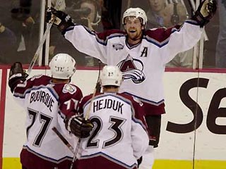 Вторую победу над клубом "Лос-Анджелес Кингз" одержали действующие обладатели Кубка Стэнли из "Колорадо Эвеланш". Как и в первом матче серии блеснул истосковавшийся по денверскому льду Петер Форсберг. Напомним, что шведский форвард сыграл лишь второй матч за "Колорадо" после тяжелой травмы, на преодоление последствий которой потребовалось 11 месяцев. В сегодняшней игре Форсберг забросил шайбу и сделал две передачи. За два матча против "королей" швед набрал 5 очков (гол и 4 передачи), а его команда уверенно ведет в серии с одним из фаворитов нынешнего розыгрыша. Неплохой матч выдал и лидер "Лавин" Джо Сакик √ он дважды забил сам и отдал результативный пас.