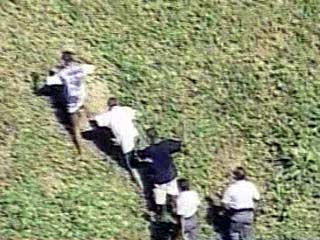 Полиция начала поиски с помощью вертолета, но пока только троих беглецов удалось водворить в камеры.