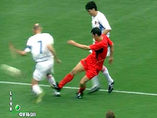 Как всегда, перед стартом Онопко исполнил гимн России. Остальные его не поддержали √ стояли с хмурыми лицами. Руслан Нигматуллин не угадал с воротами, направился не в ту сторону. На стадионе собралось 50 тысяч зрителей, температура 26 градусов при высокой влажности. Мало не покажется. Главный арбитр встречи Ким Мильтон Нильсен, тот самый знаменитый датский арбитр, удаливший четыре года назад в матче Англия - Аргентина Дэвида Бекхэма, дает свисток.
