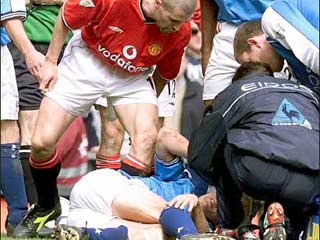 Взрывному капитану английского футбольного клуба "Манчестер Юнайтед" и бывшему лидеру сборной Ирландии Рою Кину, преждевременно покинувшему ЧМ-2002 из-за стычки с наставником, грозят новые, очень большие неприятности. Руководство Футбольной ассоциации Англии (ФАА) может оштрафовать несдержанного футболиста на рекордную сумму в 140 тысяч фунтов стерлингов - за умышленное нанесение в прошлом году травмы полузащитнику клуба "Манчестер Сити", легионеру из Норвегии Алфу Инге Хааланду.
