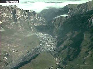 Автомобильная трасса в Кармадонском ущелье перегорожена двухметровым слоем ледяных глыб, поваленных деревьев и грязи примерно в пяти километрах от населенного пункта Гизель. Вместе со спасателями, пробивающими дорогу вверх по ущелью, дежурят несколько карет "скорой помощи".