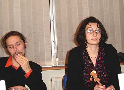 Мучаясь вопросом, кем же надо быть, чтобы быть адекватным дискурсу - сумасшедшим или прикидывающимся, я отправился на следующее мероприятие - продолжение международного семинара "Литература, рынок и литературная критика", который вел Александр Гаврилов, главный редактор "Книжного обозрения". Об этом центральном мероприятии уже много писали , просто поделюсь своими впечатлениями. Вот о Гаврилове можно сказать, что если есть тут сумасшедшие и прикидывающиеся, то Гаврилов принял антидот сумасшествия. Кто-то заканчивает спич словами "...формат критики", Гаврилов подхватывает о формате, ухмыляется словам "имплицитное присутствие", хотя (что меня раздражает) чешется, когда молчит. А вообще на этом семинаре он сидел над букетом из искусственных цветов, так что создавалось впечатления, что мы присутствуем на похоронах. Литературы, критики?