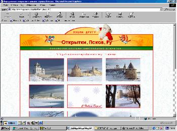 Хорошую возможность подарить в новогоднем порыве любимый город дает представленный на официальном сайте Пскова совместный проект «Открытки.Псков.Ру» (ecards.pskov.ru) дизайн-студии «Fele», сайта «Город.Псков.Ру» и фирмы «Центр-К». На данном ресурсе представлены открытки с видами Пскова (в основном зимние виды заснеженного Кремля), в том числе специально оформленные для новогоднего послания. Красиво и патриотично.
