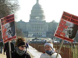 В распространенном организаторами демонстрации заявлении указывается, что "следствием еще одной войны в Ираке будут тысячи жертв среди мирного населения и миллионы беженцев".