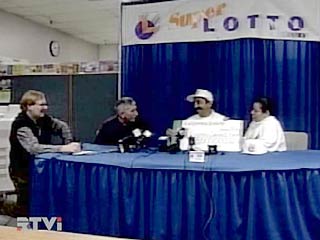 Гильермо Санчез и его жена выиграли 85 млн долларов в калифорнийской лотерее What's My Line. Журналисты отмечают, что он и его 42-летняя жена Берта очень нервничали, когда отвечали на вопросы перед камерами. "Мы не могли сомкнуть глаз четверо суток", - говорит Берта. "Мы никогда не могли представить, что нам когда-то выпадет счастье испытать подобное", - добавляет ее муж.
