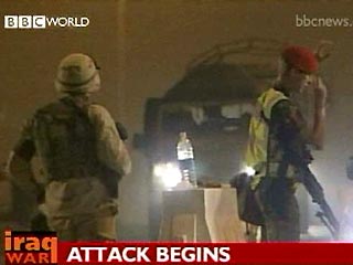 По последним даным канала "Россия", американские десантники начали операцию по захвату города Умм-Каср на юге Ирака. Этот город находится на юге Ирака близ границы с Кувейтом. Начался также штурм города Басра, что на самой границе с Кувейтом.
