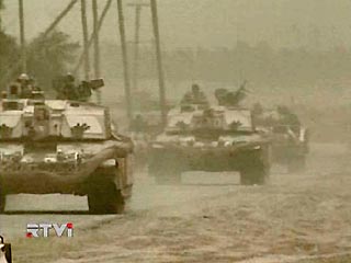 Части первой дивизии морской пехоты США вошли на территорию Ирака минувшей ночью, уничтожив иракский танк Т-55 переносной противотанковой ракетой. Войска 3-й пехотной дивизии США также уничтожили, по меньшей мере, три БМП Ирака.
