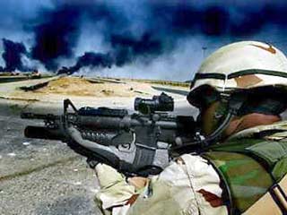 Судя по столбам черного дыма, в этом районе горели четыре нефтяные скважины. Обсрел Басры велся также из артиллерийских орудий.