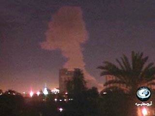 Корреспондент агентства видел, как иракские силы ПВО вели плотный огонь и выпустили, по меньшей мере, две ракеты класса "земля-воздух". Пока не ясно, какая часть города подверглась бомбардировке. По одним данным, союзники нанесли удар по южной части иракской столицы, по другим - по центру города.