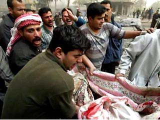Арабские телевизионные каналы отмечают, что в первые дни налетов жертв бомбардировок размещали только в двух крупных госпиталях Багдада - "Аль-Ярмук" и "Аль-Кинди". Сейчас они переполнены. Пострадавших от налетов развозят по всем больницам города.