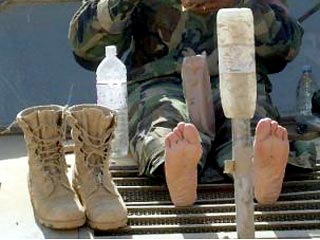 18-летний гвардеец Ли Вильямс из 1-го батальона Ирландской гвардии, входящего в боевую группу "Крысы пустыни", сказал, что его новые иракские ботинки "легче и удобнее". По его словам, заменить его разваливающиеся ботинки оказалось нечем.