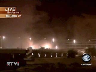 Телеканал al-Jazeera вел прямую трансляцию из Багдада - в небе над городом были видны несколько столбов дыма.