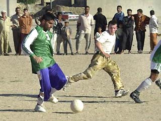 По словам британцев, основная цель этих матчей заключается в том, чтобы уверить местное население, что союзники воюют не против них, а только против режима Саддама Хусейна, сообщает украинский Новый канал.