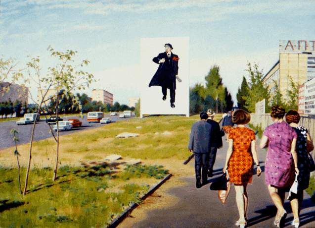 РЖ: В ваших картинах обычно два плана, первый с лозунгом или просто словом и второй - с пейзажем, голубым небом в облаках. Почему так?