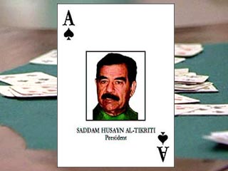 Центральное командование армии США выпустило список разыскиваемых иракцев в форме колоды игральных карт - на них изображены фотографии бывших иракских лидеров, указаны их имена и должности.