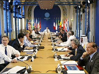 Вопросы развития мировой экономики и торговли обсудили в понедельник на первом за этот день заседании "большой восьмерки" лидеры стран - участниц G8.