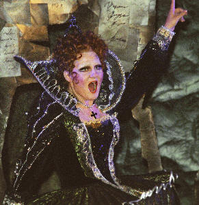 Бертман, словно через гигантскую лупу, укрупняет каждую деталь этого напряженного, гротескного зрелища, развивающегося в ритме лихорадки. Никакого намека на человеческие эмоции. Эмилия Марти в исполнении Натальи Загоринской - чертова кукла с выхолощенными чувствами и застывшими гримасами кукольно раскрашенного лица. Острая и точная игра в фантом человека, для которого нет никакого смысла в человеческой жизни: если любите - стреляйтесь! Ее "обжигающий" вокал завораживает своей бесконечной, безвоздушной линией голоса, словно не нуждающегося в паузах и дыхании.