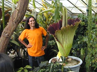 Разрекламированной как звезда Ботанического сада "трупный цветок" является самым крупным представителем семейства ароидных и его цветение - очень редкое событие. Саженец цветка 10 лет назад Ботаническому саду подарили Крэг и Фанни Филипс из города Силвер-Спринг, которые, в свою очередь, вырастили его из семян, полученных от одного калифорнийского врача, работавшего в Индонезии.
