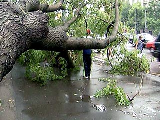 На Бульварном кольце в Москве рухнуло дерево и перегородило движение. Cильный порыв ветра повалил старое дерево на Сретенском бульваре. Оно упало на два проезжавших автомобиля - "Жигули" и Ford.