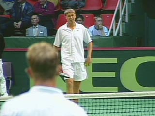 Во втором круге мужского одиночного разряда россиянин Дмитрий Турсунов играет с Джоном ван Лоттумом (Нидерланды).