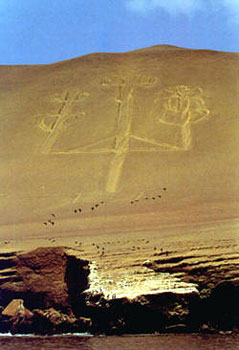 Кстати, вот еще канделябр, так называемый Канделябр Паракаса - гигантский трезубец (78 х 125 метров), "нарисованный" на склоне береговой скалы в тихоокеанской бухте Писко, неподалеку от города Паракас (Перу)