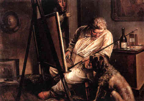 "Автопортрет с собакой" И.А. Калганова, тюменского художника 19 века, 1880-е.