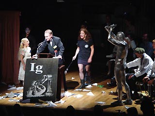 Со временем сама церемония вручения премий превратилась в своего рода "попойку башковитых". Каждый год настоящие нобелевские лауреаты - в бутафорских очках, с накладными носами, в фесках и подобного рода атрибутах - приходят, чтобы вручить лауреатам Ig Nobel их награды. По величавому театру на 1166 мест Sanders Theatre в Гарварде, в котором проходит церемония, вовсю летают бумажные самолетики. Время выступления лауреатов ограничено 60 секундами. Тех, кто болтает дольше, останавливает Miss Sweetie Poo - 8-летняя девочка, которая восклицает: "Пожалуйста, прекратите, мне скучно!"