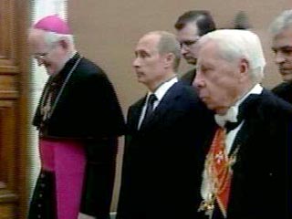 Папа Римский Иоанн Павел II поблагодарил президента Путина за все то, что он делает для сближения Русской православной и Римско-католической церквей, для укрепления мира во всем мире. "Я молюсь за Россию", - сказал Папа по-русски. Он захотел, чтобы на этой встрече находился знаменитый список иконы Казанской Божьей Матери, находящийся в его личных покоях. Он благоговейно поцеловал икону и показал ее президенту.
