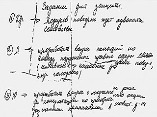 Еще одно возможное объяснение происхождения записки - адвокат записывала различные поручения господина Ходорковского, не полагаясь на свою память: "Проработать вопрос санкций по поводу нарушения правил содержания в СИЗО", "Проработать вопрос о получении денег за консультации по приобретению акций", "Контроль свидетелей защиты" и т. д. Была, впрочем, в записке одна фраза, которая, видимо, и побудила защитницу Артюхову порвать лист на клочки: "По поводу участия в РТТ (название компании) Лебедев должен дать отрицательный (неопределенный) ответ".