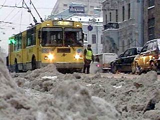Из-за продолжающегося сильного снегопада в Москве на многих магистралях образовались транспортные пробки.
