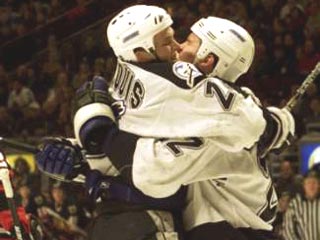 Интересно, что Винсан Лекавалье лишь перевел игру в овертайм, забросив за девять секунд до конца основного времени, а Павелу Кубине повезло, так как он сделал передачи на ничейный и победный голы. "Дьяволы" повели во втором периоде, когда Джон Мэддэн и Джэфф Фризен забросили по шайбе, ответив на стартовое взятие ворот в исполнении россиянина Дмитрия Афанасенкова.