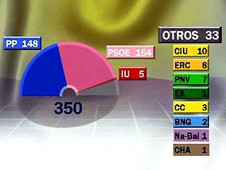 Для нынешних выборов характерна необычайная активность избирателей - на избирательные участки пришли 77% из 34,5 млн испанцев, обладающих правом голоса (почти на 9% больше, чем на предыдущих выборах в 2000 году, причем в Стране Басков и Каталонии на 10-11% больше), сообщает РИА "Новости".