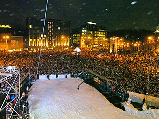 Для проведения соревнований, которые состоялись в минувший уик-энд на площади Вабадусе, в центр эстонской столицы было привезено 400 тонн искусственного снега. Более 50 человек в течение трех дней трудились над созданием огромного трамплина высотой 24 метра и длиной 70 метров.