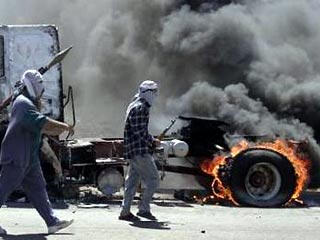 Иракские боевики уничтожили три цистерны и три бронемашины сил коалиции, погибло 9 военнослужащих США. Бой с американским конвоем продолжается. Как передает Reuters, в горящих машинах конвоя остались тела солдат.