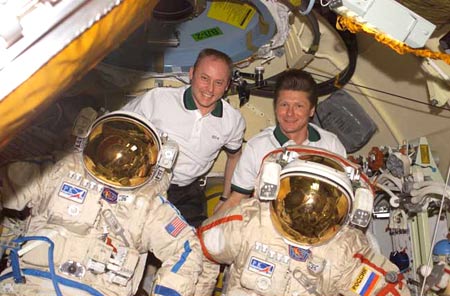 Новичок в космосе Финк, несмотря на неудачный дебют, не теряет чувства юмора. "Как вам понравился мой выход?" - с улыбкой спросил он специалистов ЦУПа, как только вышел из скафандра, и услышал в ответ: "Поздравляем, ты поставил рекорд по самому короткому выходу в открытый космос". "Настроение у экипажа бодрое, космонавты чувствуют себя хорошо", - сообщил журналистам руководитель полетами Владимир Соловьев.