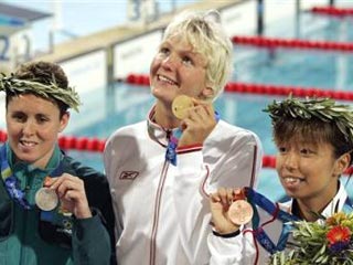 Польская пловчиха Отилия Едржзяк выиграла олимпийское золото на дистанции 200 метров баттерфляем. На втором месте оказалась первая двукратная чемпионка афинских Игр Петриа Томас из Австралии.