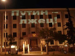В Тбилиси продолжается акция грузинских интернетчиков, разместивших перед посольством России в Грузии компьютеры, проектор и динамики и по ночам "облучающих" фасад здания посольства лозунгами с протестами политике Москвы. Световые лозунги требуют немедленного вывода всех российских военных с территории Грузии и призывают к мирному урегулированию конфликтов в Абхазии и Южной Осетии.
