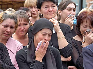 Среди пришедших на площадь несколько человек с портретами детей, погибших в результате теракта в Беслане. Некоторые из присутствующих ведут себя нервно. Пять или шесть женщин, видимо из числа родственников жертв теракта, в резкой форме требуют встречи с руководством республики.