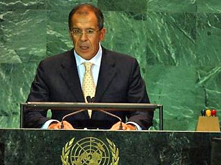 Россия выражает искреннюю надежду на то, что приближающееся 60-летие окончания Второй мировой войны и создания Организации Объединенных Наций станет исторической вехой на пути к такому мироустройству, которое сделает XXI век веком торжества высоких принципов мира, стабильности и развития, заложенных в основу Устава ООН", - сказал Лавров.