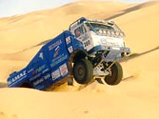 После двух этапов ралли "Вызов пустыне" в классе грузовиков продолжает уверенно лидировать "КамАЗ" N261, пилотируемый премьер-министром Татарстана Рустамом Миннихановым.