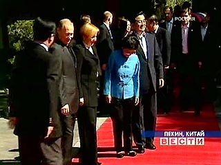 В Пекине на площади Народных Собраний прошла официальная церемония встречи Владимира и Людмилы Путиных с главой Китая Ху Цзиньтао с супругой.