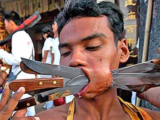 В Таиланде начался ежегодный Фестиваль вегетарианцев (Phuket Vegetarian Festival). Своей популярностью фестиваль обязан традиции участников подвергать себя самым изощренным пыткам.